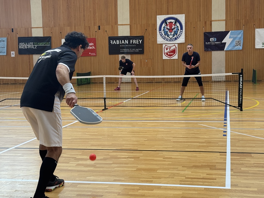 Zusammen mit dem Bürgermeister Peter Christ begrüßte Jens Riedel (1. Vorsitzender und Abteilungsleiter Pickleball) die über 80 Teilnehmer*innen und Zuschauer*innen. In spannenden Spielen trugen die 20 Mannschaften in 3 Ligen anschließend jeweils 12 Spiele (6 pro Gegner) aus. Aufgrund des Wachstums der Abteilung konnte VT Böhl nach 1 Mannschaft in der letzten Saison nun mit 2 Mannschaften starten. Beide Mannschaften schlossen mit je einem Sieg (VT Böhl 2 Sieg durch Nichtantritt der gegnerischen Mannschaft) und einem Unentschieden ab, womit es ein erfolgreicher Start für beide war.